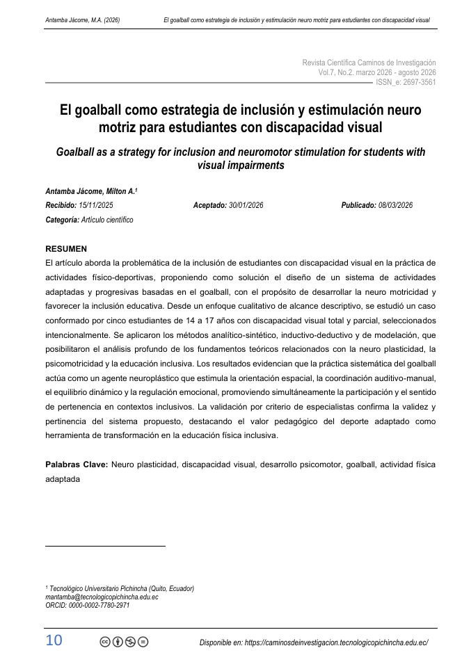 URL de la revista: https://caminosdeinvestigacion.tecnologicopichincha.edu.ec/