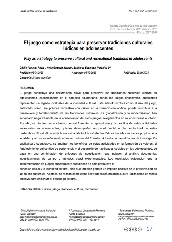 URL de la revista: https://caminosdeinvestigacion.tecnologicopichincha.edu.ec/